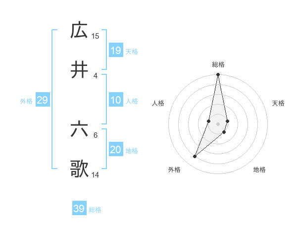広井 六歌さんの総格は39画の5点!