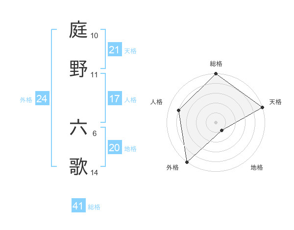 庭野 六歌さんを姓名の画数から五運を鑑定