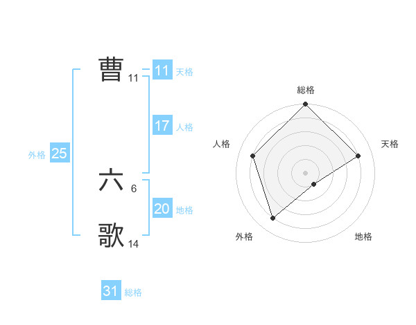 曹 六歌さんの外格は25画の4点!