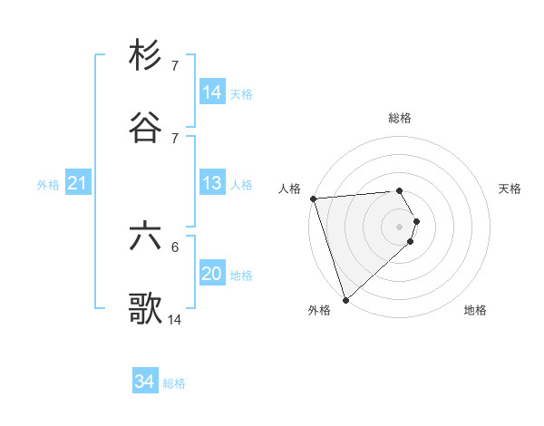 杉谷 六歌さんの外格は21画の5点!