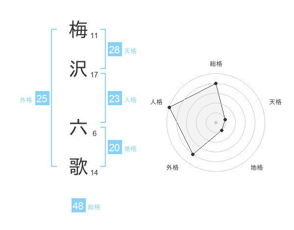 梅沢 六歌さんを姓名の画数から五運を鑑定