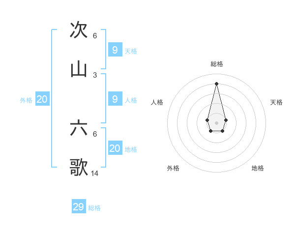 次山 六歌さんの総格は29画の4点!