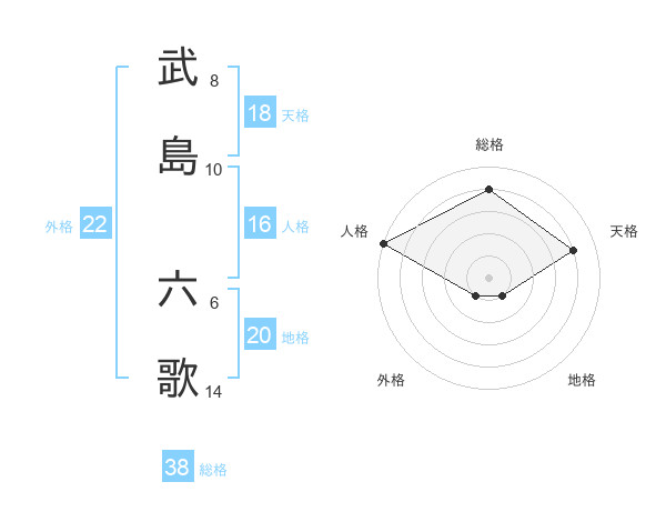 武島 六歌さんの総格は38画の4点!