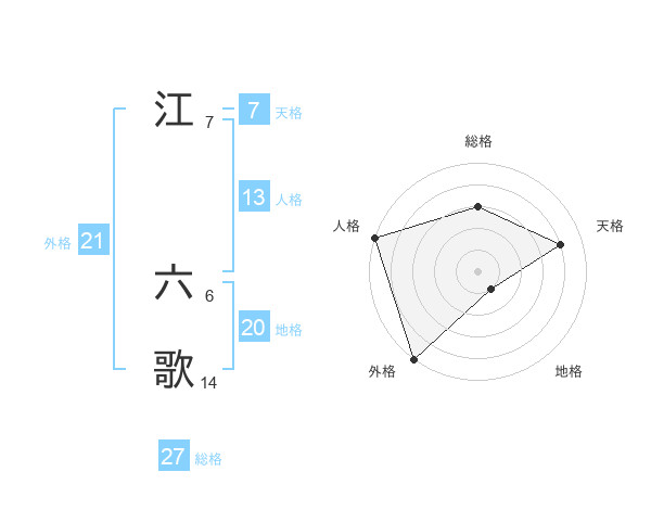 江 六歌さんの外格は21画の5点!