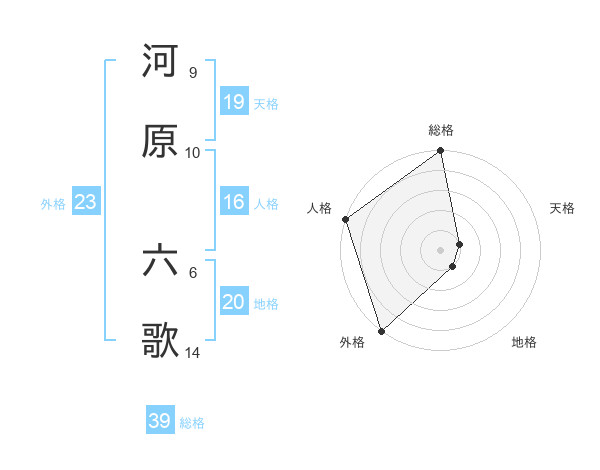 河原 六歌さんの外格は23画の5点!