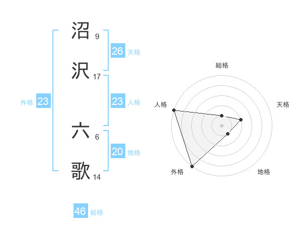 沼沢 六歌さんの外格は23画の5点!