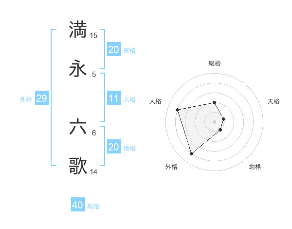 満永 六歌さんの天格は20画の1点!