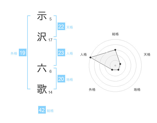示沢 六歌さんの外格は19画の1点!