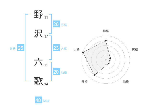 野沢 六歌さんを姓名の画数から五運を鑑定