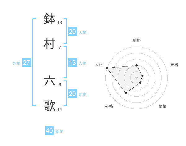 鉢村 六歌さんを姓名の画数から五運を鑑定