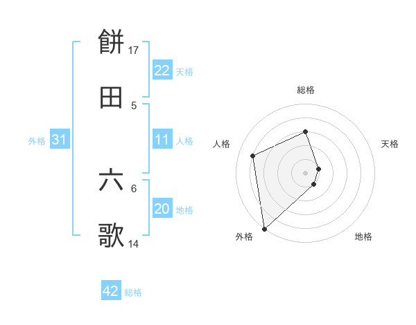餅田 六歌さんの外格は31画の5点!