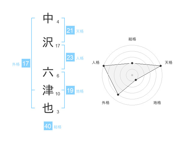 中沢 六津也さんを姓名の画数から五運を鑑定