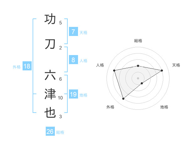 功刀 六津也さんを姓名の画数から五運を鑑定