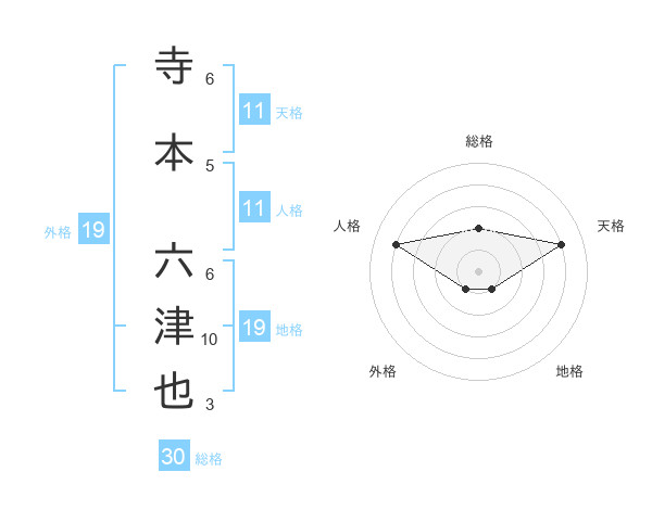 寺本 六津也さんの天格は11画の4点!