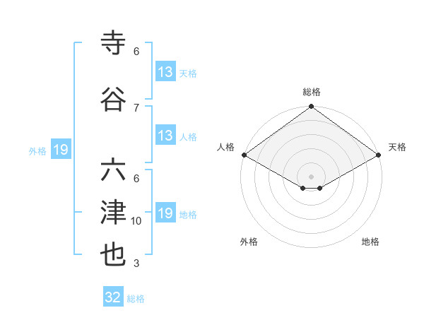 寺谷 六津也さんの総格は32画の5点!
