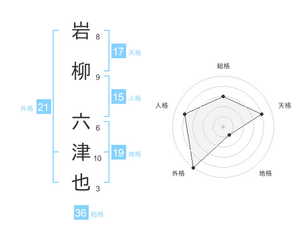 岩柳 六津也さんを姓名の画数から五運を鑑定