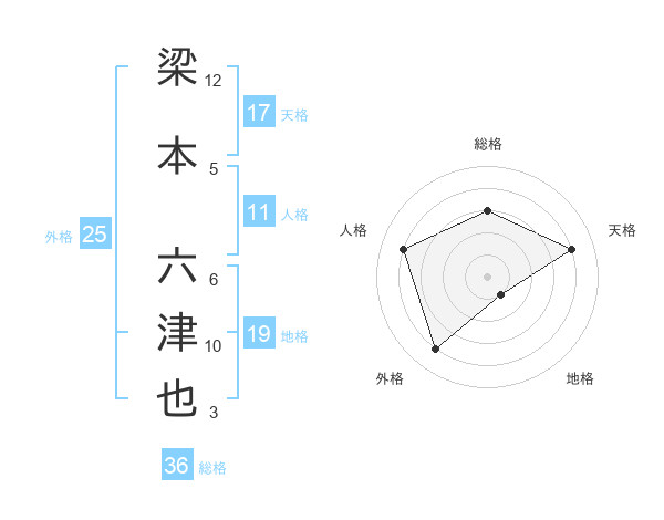梁本 六津也さんの天格は17画の4点!