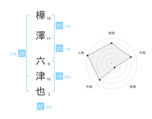 樺澤 六津也さんを姓名の画数から五運を鑑定