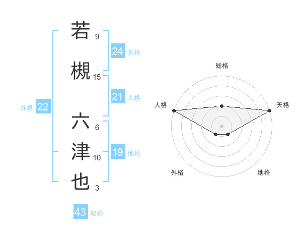 若槻 六津也さんの天格は24画の5点!
