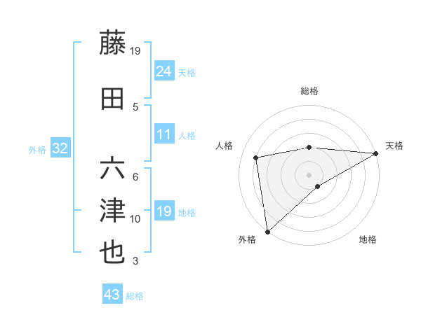 藤田 六津也さんの外格は32画の5点!