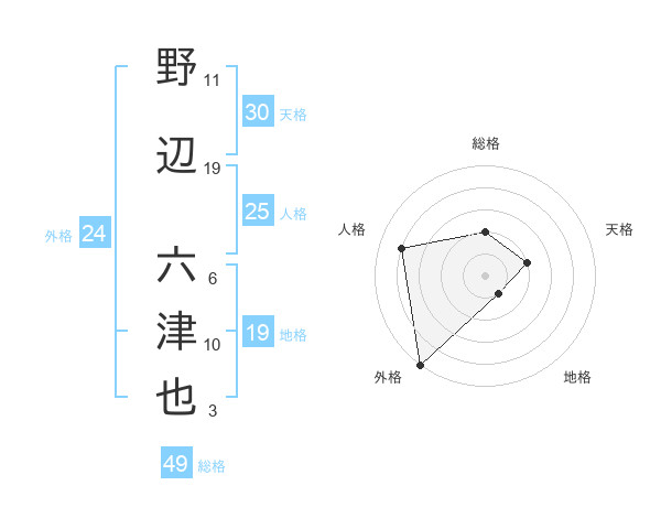 野辺 六津也さんの外格は24画の5点!