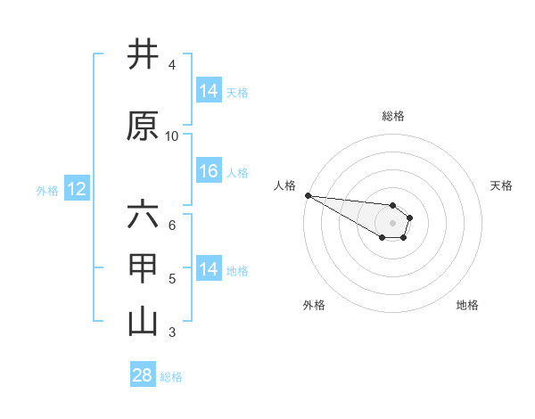 井原 六甲山さんを姓名の画数から五運を鑑定