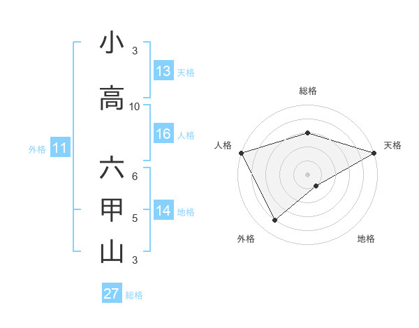 小高 六甲山さんを姓名の画数から五運を鑑定