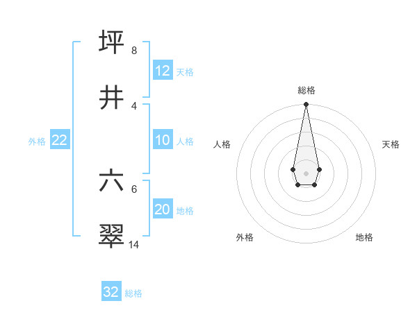 坪井 六翠さんを姓名の画数から五運を鑑定