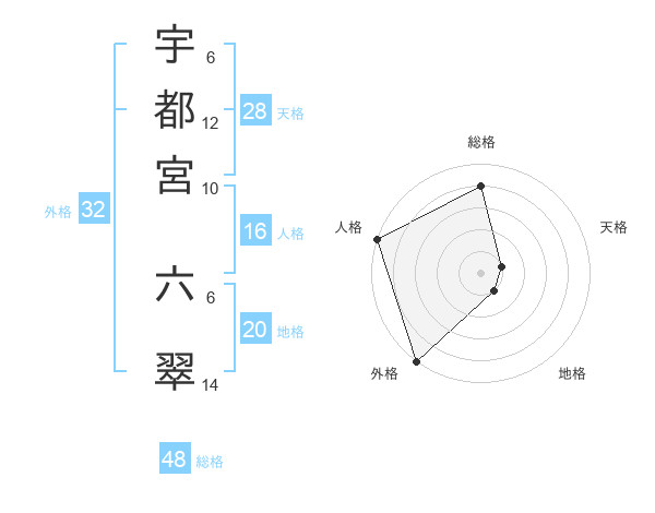 宇都宮 六翠さんの総格は48画の4点!