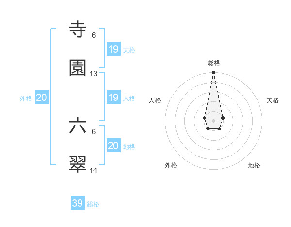 寺園 六翠さんの総格は39画の5点!