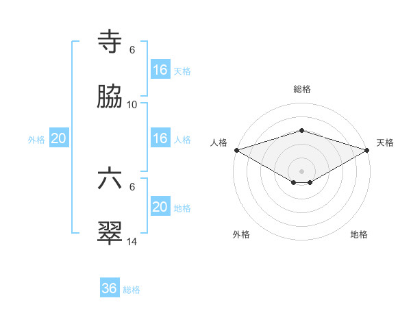 寺脇 六翠さんの天格は16画の5点!