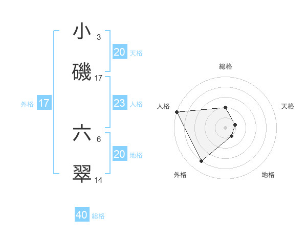 小磯 六翠さんの地格は20画の1点!