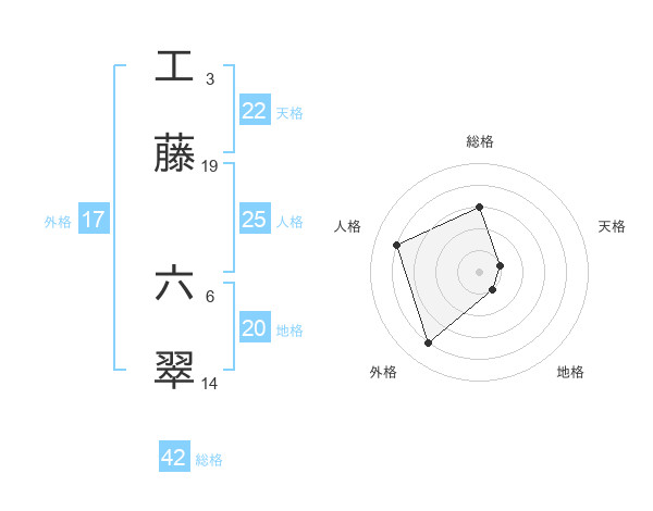 工藤 六翠さんを姓名の画数から五運を鑑定
