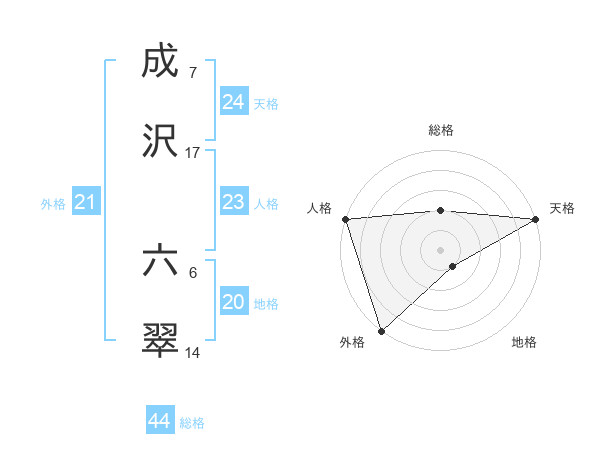 成沢 六翠さんの外格は21画の5点!