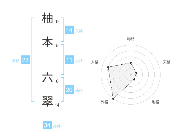 柚本 六翠さんの外格は23画の5点!