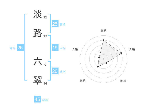 淡路 六翠さんを姓名の画数から五運を鑑定