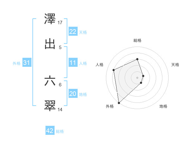 澤出 六翠さんを姓名の画数から五運を鑑定