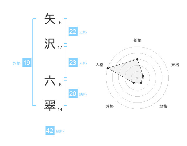 矢沢 六翠さんを姓名の画数から五運を鑑定