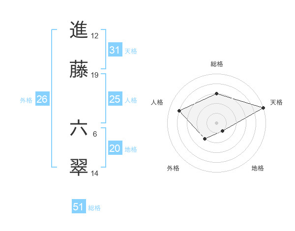 進藤 六翠さんを姓名の画数から五運を鑑定