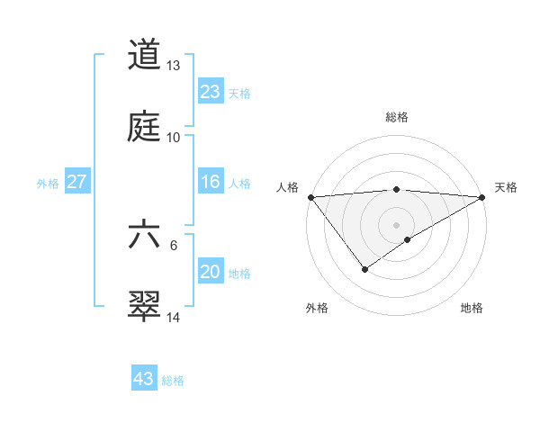 道庭 六翠さんの天格は23画の5点!