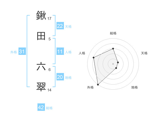 鍬田 六翠さんの外格は31画の5点!