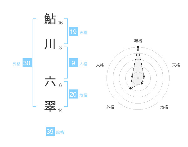 鮎川 六翠さんを姓名の画数から五運を鑑定