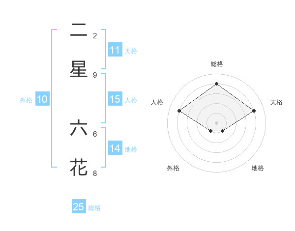 二星 六花さんの総格は25画の4点!