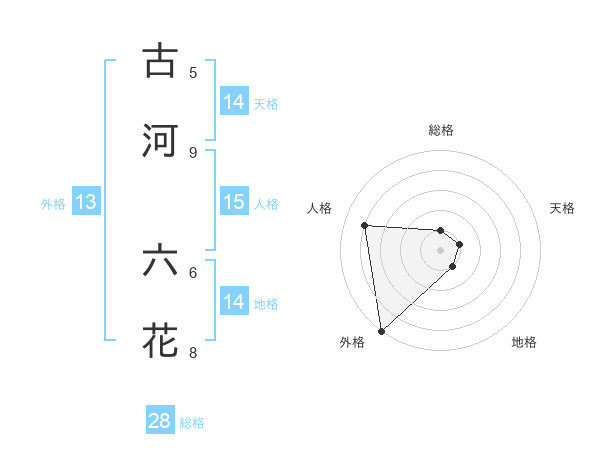 古河 六花さんの外格は13画の5点!