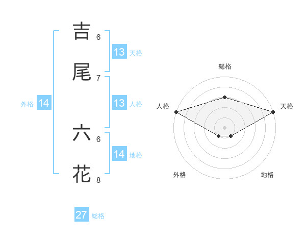 吉尾 六花さんを姓名の画数から五運を鑑定