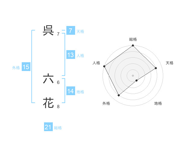 呉 六花さんの総格は21画の5点!
