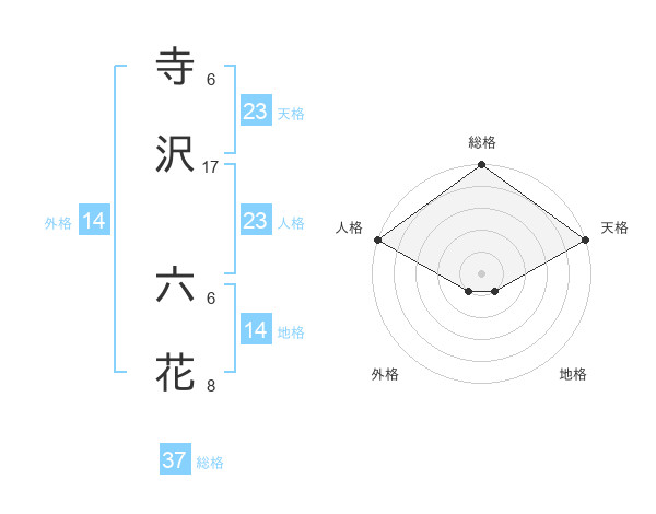 寺沢 六花さんの天格は23画の5点!