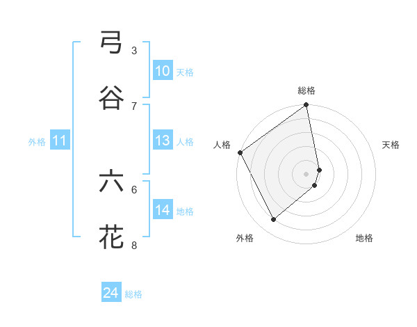 弓谷 六花さんを姓名の画数から五運を鑑定