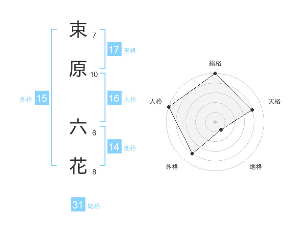 束原 六花さんの天格は17画の4点!
