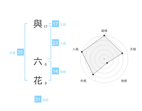 與 六花さんの外格は25画の4点!